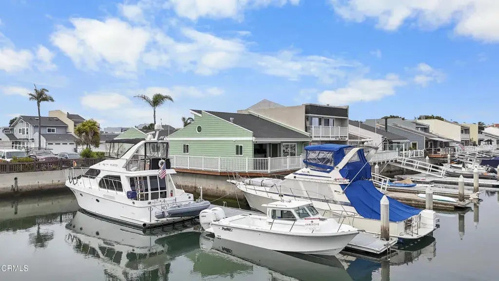 Ultimate Boater's Paradise - 100' Dock Easement & 4 Boat Docks.A rare and stunning single-level, south-facing waterfront residence in the heart of Mandalay Bay, this premium corner-lot property boasts four boat docks, one of which is shared with the neighbor to the east. Two gangways provide direct access to the water, including one completely private gangway that leads you to the full 100-foot dock easement equipped with 50-amp power and water for larger vessels. This 2-bedroom, 2-bath coastal retreat was completely renovated down to the studs in 2020-2021, blending thoughtful design with high-end upgrades. Flooded with natural light and abundant south and west sun exposure, the home feels warm and inviting from sunrise to sunset. Skylights and expanded windows enhance the open, airy layout. The kitchen features granite countertops, premium appliances, and custom cabinetry, while the expanded primary suite offers additional windows, a custom storage closet, and serene harbor views.Step outside to the wraparound west-facing deck, fully rebuilt with retrofitted supporting beams tied into the seawall. A new piling and dock were also added during the renovation, ensuring stability, longevity, and ease of use for your vessels.Additional upgrades include a newer roof, dual-pane windows, and modern systems throughout. The premium corner lot offers extra privacy, wide water views, and nearby guest parking, a rare advantage in the harbor.