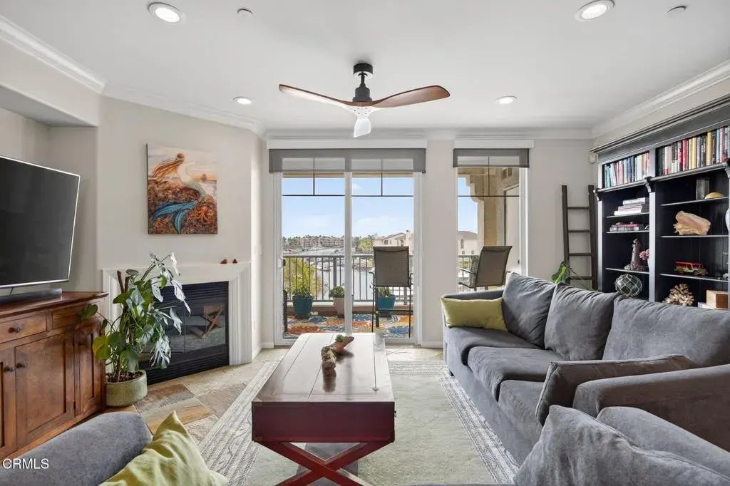 Enjoy unobstructed views of the Channel Islands Harbor from nearly every room. Perfectly capturing the essence of coastal living. The most desirable southern exposure floods the interior with natural light. Features include kitchen with a center island high-top bar, granite countertops, stainless steel appliances, and elegant slate flooring through the main living areas The living room boasts a cozy fireplace, large slider with breathtaking views. Both bedrooms include en suite bathrooms, master walk-in closets, and mirrored wardrobes. All with scenic water vistas. Condo is located on the first floor with a single-level layout.Community Amenities: Residents have access to gated subterranean parking with a storage area and two designated side-by-side spaces, a beautiful spa, and a lush landscaped courtyard with seating and fountain areas.Schedule your viewing today!
