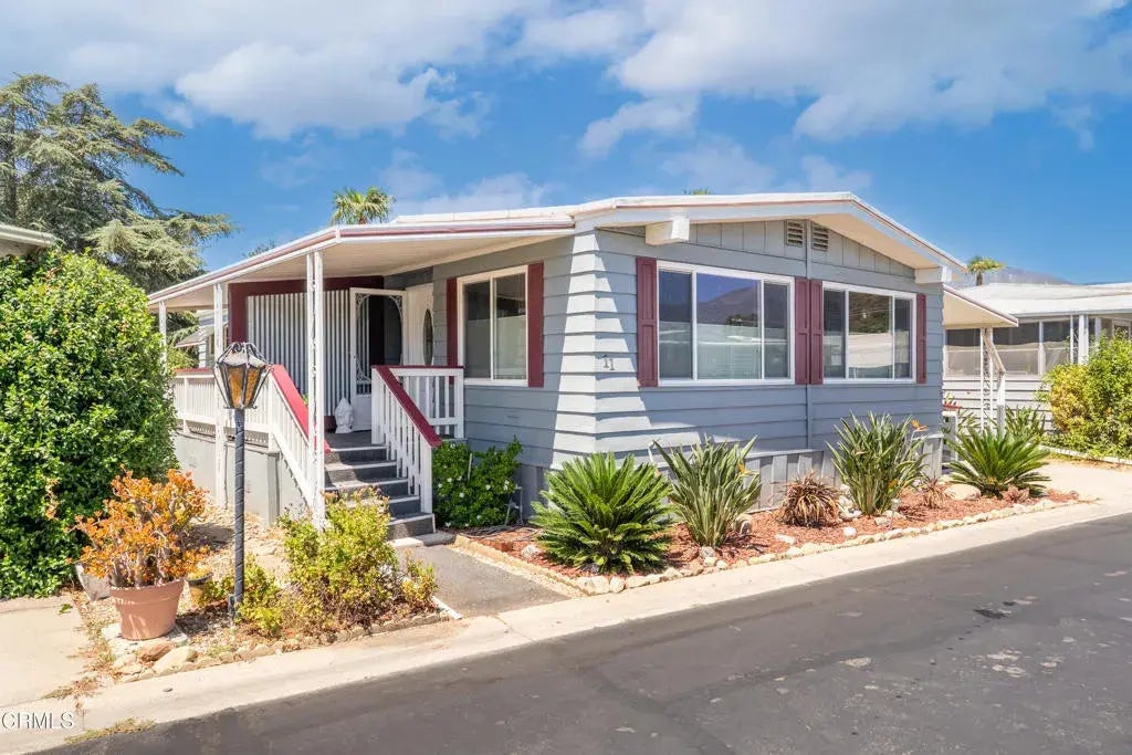 Located on the desirable Ojai Villa 55+ gated community in the Ojai Valley. This charming 2-bedroom, 2-bathroom home offering approximately 1,248 sq. ft. of comfortable living space. Built in 1971, this well-maintained residence has been thoughtfully updated to provide both modern convenience and timeless appeal.Step inside to a light-filled living room featuring recessed lighting, solar shades, and durable vinyl plank flooring. The kitchen is equipped with newer fixtures, and all appliances convey with the sale. A spacious laundry room with tiled flooring adds functionality, while the guest bathroom offers a convenient shower-only layout.The guest bedroom includes French doors leading to the patio, while the large primary suite boasts ample storage, a vanity area, and an ensuite bathroom with a shower. Updated windows, central air and heat, and a newer HVAC system ensure year-round comfort.Enjoy the outdoors with a generous yard, water softener, peek-a-boo views, and gated access to a private road. Additional highlights include a permitted ADA-accessible ramp, making this home suitable for a variety of needs.📌 Space rent to 'new' buyer: $1,048.56/monthThis inviting property combines comfort, updates, and accessibility.