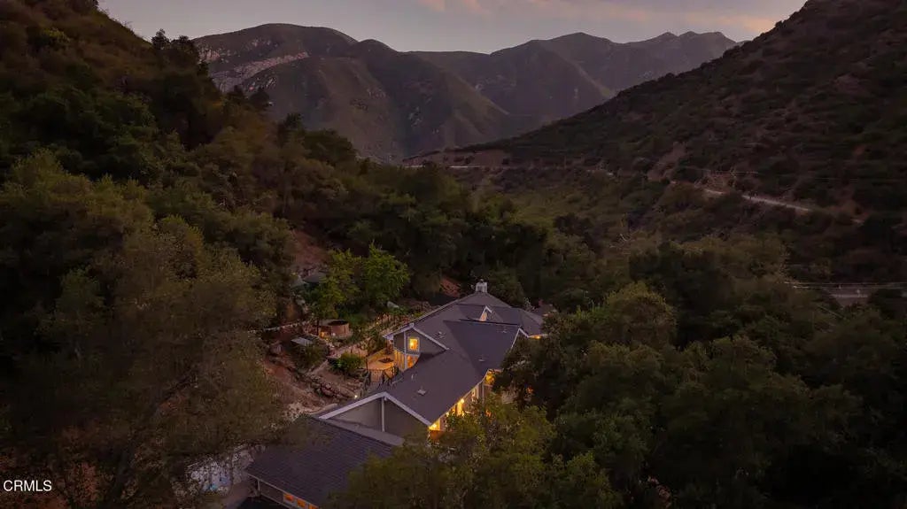 Nestled in nature, surrounded by majestic oaks and the gentle sounds of flowing creeks, this extraordinary Ojai estate -- with 2 private guest units and an in-home spa -- offers more than a home. It offers a way of life. Just 10 minutes from downtown yet a world away, it combines peaceful seclusion with convenient access to the town's vibrant community. Hiking trails, hot springs, and endless outdoor adventures are minutes from your doorstep, with the river just a short walk away, making nature your constant companion.The main residence spans 3,207 square feet of beautifully crafted living space. Double-height vaulted ceilings, exposed wood beams, and a dramatic stone fireplace anchor the great room, while expansive windows bathe the home in natural light. With four bedrooms, three bathrooms, and a thoughtfully designed office infused with creative energy, the home provides ample space for both relaxation and inspiration. The primary suite is a true retreat, featuring a private treetop balcony, generous walk-in closet, and personal cedar sauna. Designed for chefs and entertainers alike, the gourmet kitchen boasts a 48' Wolf range, a large central island, and seamless flow into the home's gathering spaces.Beyond the main residence, the property includes 2 large, private attached guest houses, featuring a charming 1-bed, 1-bath home with private patio and a spacious studio apartment in the treetops. Both boast high ceilings and enormous windows to complement the surroundings and take in nature. Each space contains a full kitchen as well as a full bath. This flexible layout is