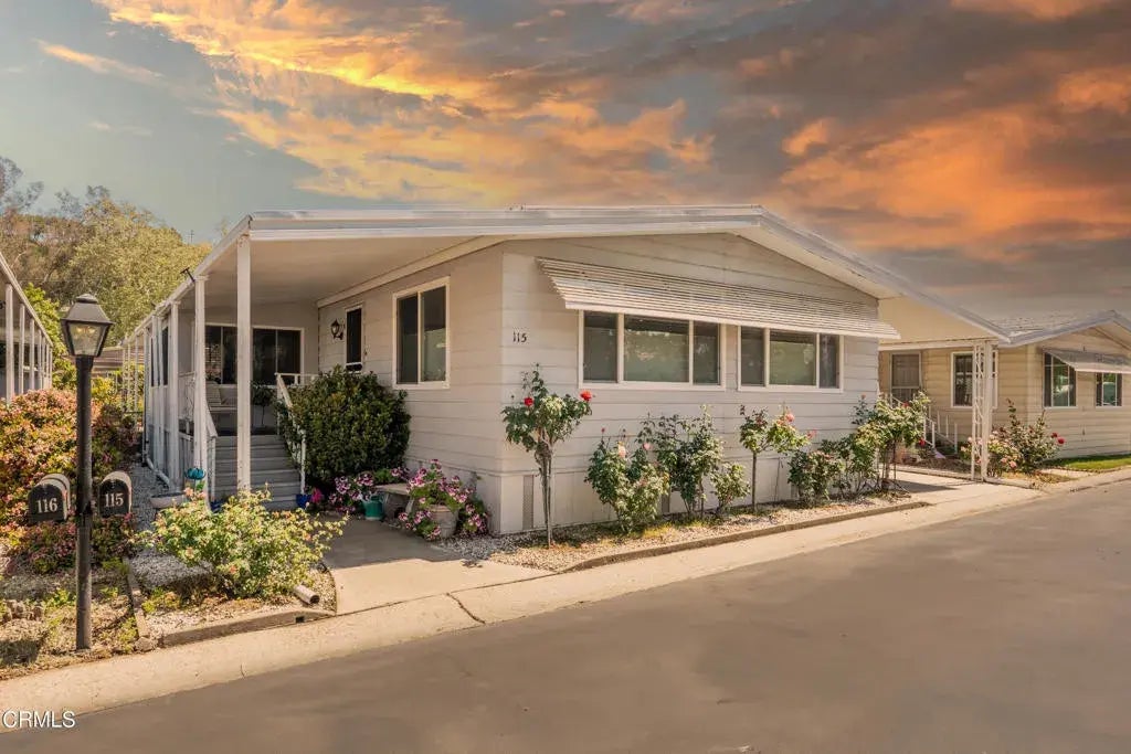 Two bedroom -plus third bedroom option , beautifully maintained home is located in the desirable Ojai Oaks Village All Age Park in Ojai. Offering an open concept floor plan, abundant storage, and thoughtful upgrades throughout.The light-filled living areas feature newer windows and durable laminate flooring throughout the common spaces. The kitchen has been updated with a stylish backsplash, modern countertops, recessed lighting, and a solar tube skylight for additional natural light.The guest bathroom offers bead board accents and a full tub/shower, while the spacious guest bedroom features a large step-in closet. The oversized primary suite includes multiple closets with built-in shelving and a private bathroom with a vanity area and a shower-only layout.An enclosed patio room provides flexible use as a potential third bedroom, home office, or creative space.Additional highlights include a workshop shed with electricity and windows, a 3-car carport, an updated front porch with Composite decking, and beautiful mountain views.Community amenities include a pool, spa/, clubhouse, and RV parking, providing a resort-like lifestyle right at home.