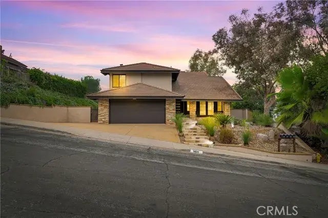 Discover this stunning two-story single-family home with breathtaking mountain views. Officially listed as a 3-bedroom property, it features 4 bedrooms and 2.5 bathrooms, making it perfect for families or those needing extra space. High ceilings in the living room create an airy atmosphere. The dining room seamlessly connects to the living room, while the kitchen opens to the cozy family room. The kitchen boasts granite countertops, stylish glass cabinets, a mini island, and a convenient pantry. Enjoy cozy evenings by the fireplace in the family room. laminate flooring flows throughout the downstairs, complemented by recessed lighting for a modern touch. The spacious master bedroom offers a private balcony with stunning views, plus two closets and a dual vanity in the en-suite bathroom. Three additional bedrooms share a hallway bathroom, which also features a dual vanity for added convenience. Relax on the covered patio in the backyard while taking in the picturesque views. A lush grassy area is perfect for outdoor activities. An attached two-car garage provides ample parking and storage. Situated close to Via Verde Country Club, Ladera Serra Park, and the 57 freeway, this home combines comfort with convenience. Dont miss out on this gem!