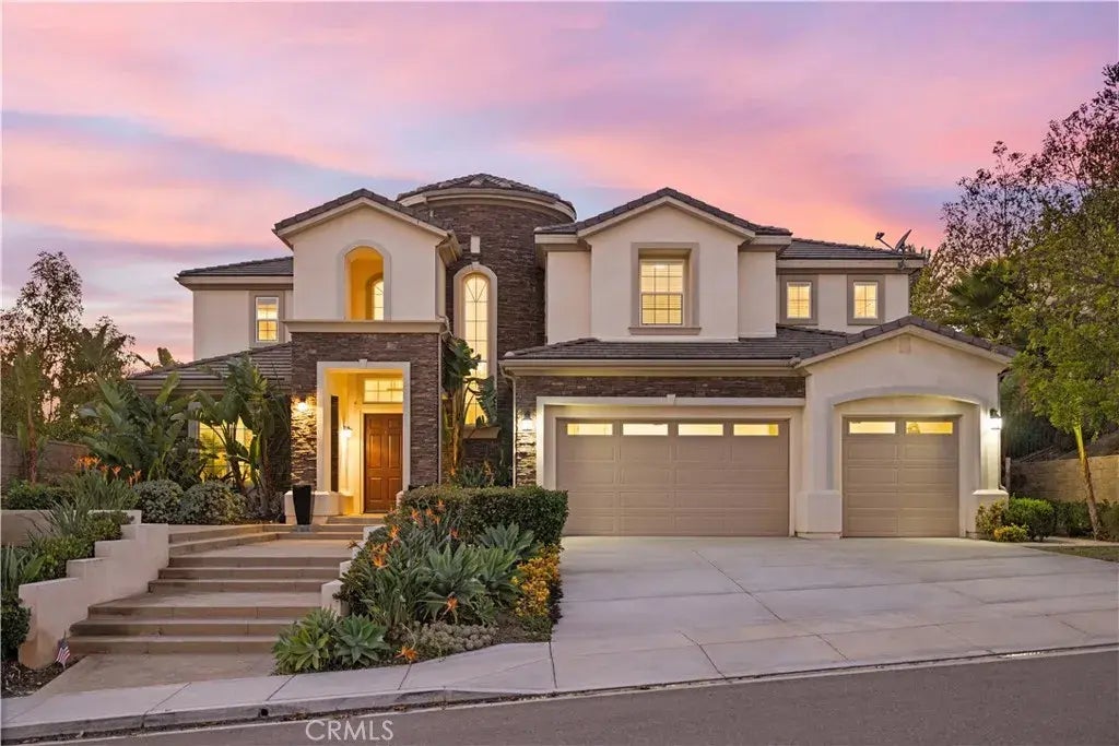 This modern luxury home is in the top community of Yorba Linda and was carefully built by the well-known builder Toll Brothers, featuring luxurious upgrades and classic design throughout. It has five spacious bedrooms, 4.5 bathrooms, and a three-car garage, providing ample space and a comfortable living environment. Upon entering the tall and grand foyer, you will be captivated by the impressive circular staircase and elegant design. The main floor includes a study and a guest bedroom with a private bathroom, making it perfect for entertaining friends and family. The spacious kitchen features a large central island with a breakfast bar and offers ample counter and cabinet space. It is equipped with a full set of high-end KitchenAid stainless steel appliances, including a built-in refrigerator, double ovens, and a six-burner stove. The spacious walk-in pantry combines practicality and beauty. The master suite is a tranquil retreat, with a luxurious spa bathroom that includes a soaking tub, double vanity, glass shower, and an oversized walk-in closet. This peaceful space provides the perfect environment for relaxation and unwinding. Each secondary bedroom has its own ensuite bathroom, ensuring the comfort and privacy of all. The laundry room is equipped with a counter, sink, and storage cabinets, making daily chores a breeze.Sliding glass doors create a seamless flow between the indoor and outdoor spaces. Step outside to a beautiful courtyard, where you can entertain guests, relax, and enjoy fun times. With low taxes, convenient shopping and transportation options, and just s