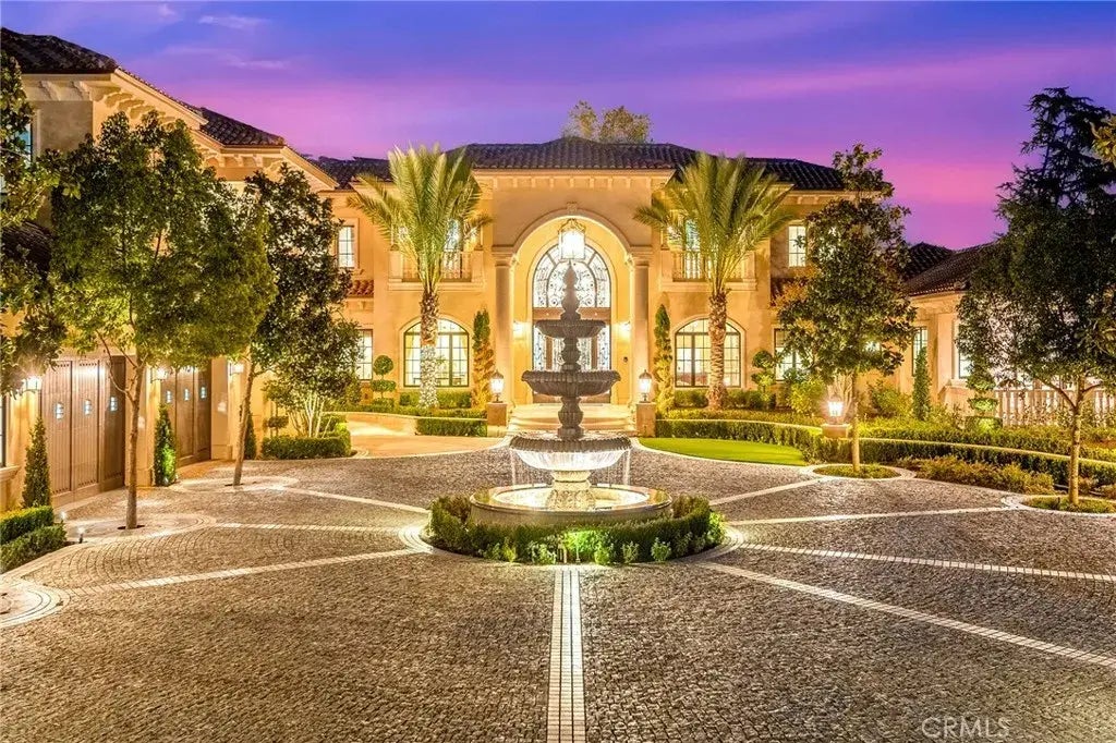 Welcome to an extraordinary estate within the prestigious Bradbury Estates, where unparalleled luxury meets timeless sophistication behind secure, guarded gates. This magnificent Tuscan-inspired residence, encompassing over 14,600 square feet, stands as a masterpiece of architectural excellence. Drawing inspiration from the legendary Bellagio, the residence showcases an harmonious blend of classical elegance and contemporary refinement. The grand entrance immediately captivates with its two-story domed ceiling, crowned by a spectacular custom Murano glass chandelier suspended above imported Caldia marble flooring from Carrara, Italy. Hand-embroidered silk wallcoverings and Lalique crystal sculptures create an atmosphere of refined opulence. The home's flowing layout features eight luxuriously appointed bedroom suites, each uniquely adorned with custom chandeliers and artisanal finishes. Nine impeccably designed bathrooms showcase premium marble and sophisticated fixtures. The formal living spaces boast soaring ceilings, marble fireplaces, and expansive windows that frame views of the mosaic swimming pool and meticulously landscaped grounds. A state-of-the-art smart home system, valued at $1.5 million, seamlessly controls every aspect of this remarkable property. Additional amenities include an indoor lap pool, a climate-controlled outdoor living area with automated sliding doors, and a separate guest house complete with two bedroom suites and kitchenette. The executive wing features a sophisticated office with a conference room, while fitness enthusiasts will appreciate the