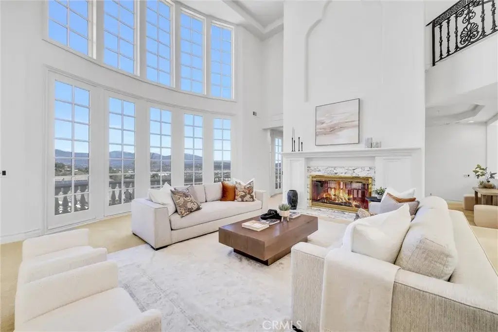 This stunning hillside chateau in prestigious Skycrest Estates offers breathtaking panoramic city and mountain views, elegant high-end finishes, and ample space for multigenerational living. Beyond the grand double doors, soaring cathedral ceilings, marble floors, custom railings, and exquisite millwork create a timeless ambiance, with stunning views from nearly every room.Just off the foyer, a private office features floor-to-ceiling walnut built-ins, a fireplace, and a wet bar. The great room boasts a dramatic double-sided fireplace, while floor-to-ceiling windows perfectly frame the scenic mountains. The formal dining room leads to the spacious gourmet kitchen, complete with granite countertops, stainless steel appliances, two sinks, an island, a breakfast bar, and a well-appointed butlers pantry. The adjoining family room offers another fireplace, a full bar, and French doors that open to the expansive front patio, ideal for dining, entertaining, or unwinding.This level also includes a home gym with a built-in sauna, which can double as a guest room, along with a large in-law suite with direct access to the back patio. The suite includes a walk-in closet and a luxurious marble-clad ensuite.Upstairs, the grand primary suite occupies its own private wing, featuring tray ceilings, a sitting area, a fireplace, and unobstructed mountain views. The suite includes dual spa-like ensuites: the ladies bath offers custom marble slabs, a shower, a separate jetted tub, a dressing room, and a bidet-equipped W/C, while the gentlemans bath features a granite-topped vanity and a step-in